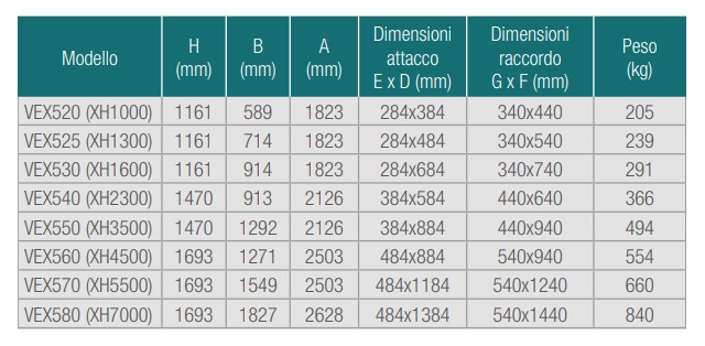 La gamma di centrali VEX500 (Everest XH) è costituita da centrali