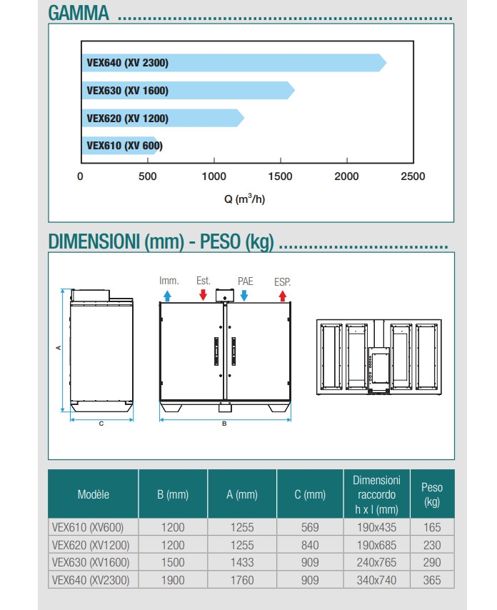Il VEX 600 (Everest XV) è una centrale a recupero di calore