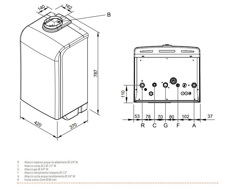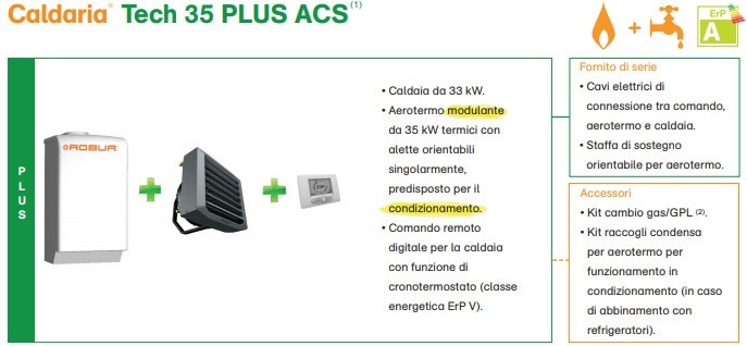 NOLEGGIO - ROBUR Caldaria° 35 TECH SMART ACS (Caldaia 33kW + Aerotermo 35kW da 3.000 mc/h + Miscelatore 10.000 mc/h + h 7mt * 170mq * 1020mc) (Art. F1292S110+E 3M)