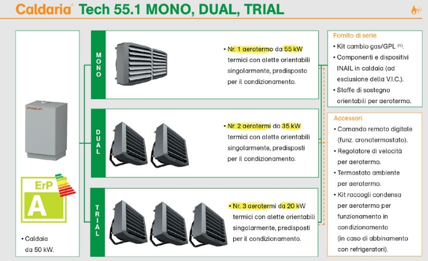 NOLEGGIO - ROBUR Caldaria° TECH 100.1 TRIAL (Caldaia 99.8kW + 3 Aerotermi 35kW + Miscelatore 10.000 mc/h + 7mt * 480mq * 3360mc) (Art. F1292H110+E 3M)
