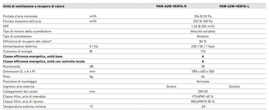 Panasonic Unità di ventilazione a recupero di calore PAW-A2W-VENTA R-L (Art. PAW-A2W-VENTA)