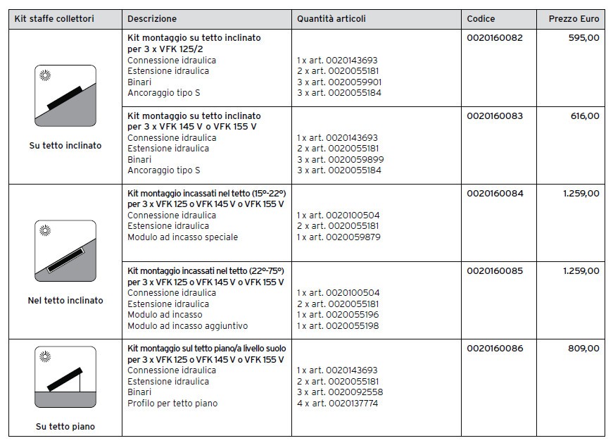 Vaillant kit montaggio incassati nel tetto (15°-22°) per 3 x VFK 125 o VFK 145 o VFK 155 V (Art. 0020160084)